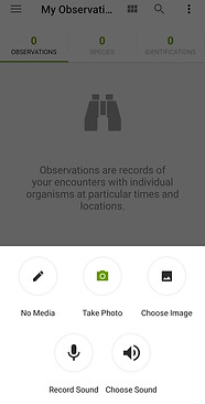 To add an observation from the app, you can either click the big green button with a plus sign on it or 'New Observation' in the menu.